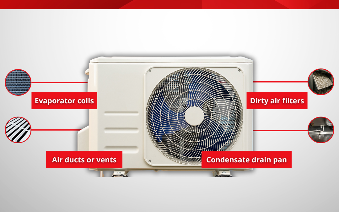 common areas where moisture collects in an ac unit